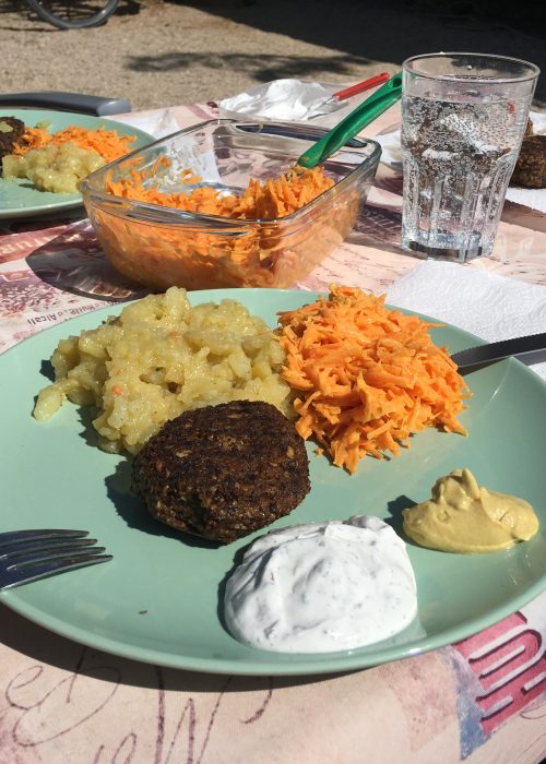 Doch heute wurde es Zeit, Thomas fand sich im Kühlschrank zurecht und das ist immer ein Zeichen, dass er so gut wie leer ist. Ein kleines Stück Butter, Joghurt – für unser immer noch heißgeliebtes Porridge, ein paar Tropfen Sahne, scharfer Senf und 3 Karotten war alles, was sich noch finden ließ.