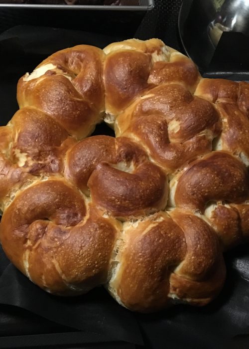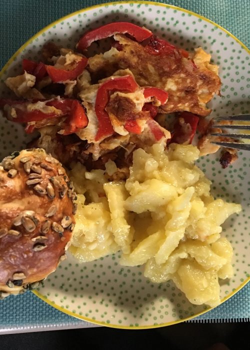 Wir sind satt und fahren heim. Zu Hause bin ich noch so tatkräftig, dass ich unser Stromangebot ausnutze und wunderschöne Laugenweckle und einen Marmorkuchen für den Sonntag backe.
